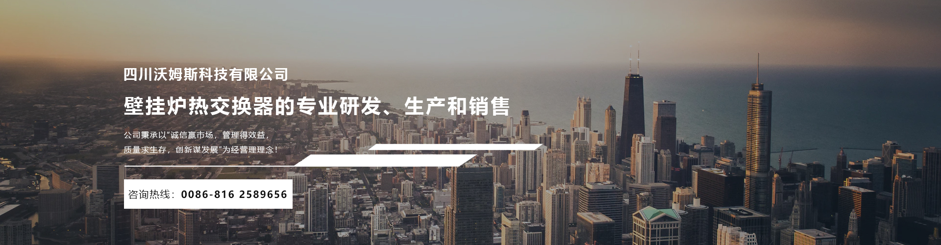 四川沃姆斯科技有限公司座落于環(huán)境優(yōu)美的中國科技城----四川省綿陽市。 公司成立于2006年,是一家從事壁掛爐熱交換器的專業(yè)研發(fā)、生產(chǎn)和銷售的生產(chǎn)廠家。經(jīng)過9年發(fā)展,匯集了一批擁有行業(yè)領(lǐng)先技術(shù)和豐富應(yīng)用經(jīng)驗(yàn)的優(yōu)秀人才。現(xiàn)代化的生產(chǎn)設(shè)備,先進(jìn)的生產(chǎn)技術(shù)工藝及各種精密的檢測設(shè)備,我們擁有年產(chǎn)量高達(dá)100萬臺(tái)的生產(chǎn)能力,能急客戶之所急,想客戶之所想,在市場中贏得客戶的一致認(rèn)可。 公司秉承以“誠信贏市場,管理得效益,質(zhì)量求生存,創(chuàng)新謀發(fā)展”為經(jīng)營理理念!憑借高質(zhì)量的產(chǎn)品,完善的售后服務(wù),良好的信譽(yù),贏得市場! ...